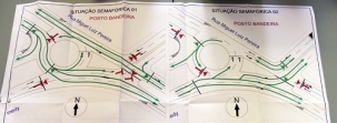 Entendeu o mapa? É parte do projeto de instalação de semáforo no trevo de acesso ao Lar Paraná. A empresa ALN Mobilidade Urbana, de Cascavel, apresentou a papelada à prefeita Regina Dubay, nesta quarta-feira. Após a "carimbada" do Dnit, a prefeitura vai licitar a compra do equipamento, que deve custar cerca de R$ 80 mil. O semáforo funcionará no sistema dois tempos. Oxalá!...