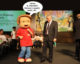 O clic é desta segunda-feira, em Curitiba, durante a cerimônia de entrega da premiação do Agrinho, o programa da Faep e do Senar. O deputado estadual Douglas Fabrício prestigiou o evento e, pelo visto, deu tempo até de colocar a conversa em dia com o mascote do programa. Só não quis cair na dança, não...