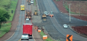 Olha aí como andam as obras de duplicação da PR-317, entre Floresta e Engenheiro Beltrão. As equipes trabalham na terraplenagem e na construção de viadutos. Estão trabalhando também na construção da ponte sobre Rio 119, entre Peabiru e Campo Mourão. Um trecho de duplicação, de Floresta até a praça de pedágio, foi liberado de forma provisória para o tráfego. A duplicação tem que estar pronta até o fim do ano que vem. E viva o pedágio!...