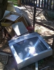 "Infelizmente tem gente que ainda acha que calçada é lugar de depositar lixo e que aparelhos eletrônicos podem ser deixados assim. Essa televisão está já há vários dias na av. Goioerê, perto da rua Santa Catarina".