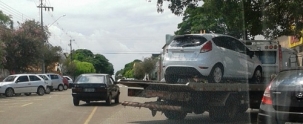"Olha onde esse caminhão guincho resolveu estacionar, na rua São Paulo próximo à av. Goioerê, às 12h30 desta quarta-feira. Pode isso, Arnaldo?" Leandro