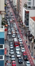 A av. Brasil não tem mais estacionamento de um dos lados da via, que virou ciclovia (veja faixa vermelha na foto).