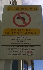 Segundo o 11.o BPM é isso que está faltando em Campo Mourão: placa informando aos motoristas de caminhão que veículos acima de 10 toneladas não podem passar pela cidade.