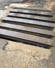 "Diante do problema com os bueiros do posto Vian, segue uma sugestão adotada em Ponta Grossa. Foram cortados trilhos de trem e utilizados para fazer de grade. Só assim para suportar o tráfego de veículos pesados".