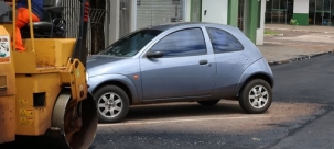 Em tempo: homens e máquinas voltaram depois e fizeram o pedacinho ocupado pelo carro.