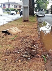 "Após colocação da grama na av. José Custótio de Oliveira, entre as ruas São Paulo e Harrison Jose Borges, deixaram essa sujeira ao lado do meio fio. Aí veio gari e jogou a sujeira sobre a grama. A prefeitura faz de conta que fiscaliza e a empresa de limpeza faz de conta que faz a varrição e quem paga a conta somos nós". Maurício