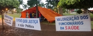O grupo colocou faixas pedindo melhorias nas estadas, na saúde e para os servidores.
