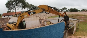 A prefeitura demoliu o antigo palco da arena de rodeio do Parque de Exposições.