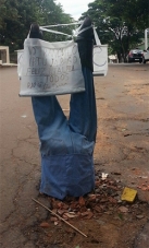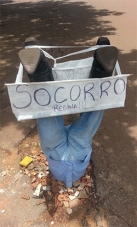 Teve protesto bem humorado, neste sábado, contra os buracos da rua Mamborê, entre as avenidas Irmãos Pereira e José Custódio de Oliveira. "Socorro, Regina!", diz um lado do cartaz. "Vou tranquilo, o IPTU está pago, feliz natal pra todos”, completa. Viu só, isso é que é entrar de cabeça pelo buraco...