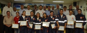 A Câmara de Vereadores de Barbosa Ferraz entregou nesta segunda-feira moção de aplausos para a equipe do Samu que atua na cidade. A homenagem foi iniciativa dos vereadores Luciano de Souza, Celso Marcos Preisner e Carlos Roberto Lucindo, com aprovação por unanimidade. O prefeito Gilson Cassol participou da sessão. O Samu funciona há um ano em Barbosa Ferraz. Portanto, sem bolo, mas com moção...