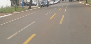 "Fiz questão de tirar uma foto da av. Ney braga, onde demonstra o tanto que é mal feito alguns serviços. No caso, foi pintada uma nova faixa na avenida, sendo que as outras duas velhas não foram apagadas, ou seja, qual é a faixa correta?" Rogério