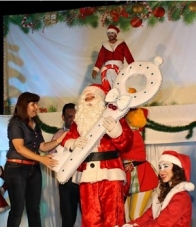 O Papai Noel já chegou a Campina da Lagoa. Até que se prove o contrário foi a primeira chegada oficial do "bom velhinho" na região. Foi no Lago Municipal, com a tradicional entrega da chave da cidade pela prefeita Célia Cabrera. Antes, teve apresentação do Espaço Sou Arte, de Campo Mourão. Agora, cá pra nós: o Papai Noel perde as chaves das cidades, pra todo ano ter que recebê-las de novo?...