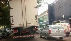 As duas fotos foram feitas nesta segunda-feira, por volta das 14h30, com uma diferença de meia hora entre uma e outra. Os caminhões estão na av. Capitão Índio Bandeira, em frente à Caixa Econômica. A diferença é que um vai no sentido centro-saída pra Maringá e outro o inverso. Ou seja: vem caminhão de todo lado. E tanto abuso que chega a dar a impressão que é de propósito, só pra sair na Boca Santa...
