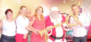 Um bom público foi à praça São José nesta terça-feira à noite pra ver a chegada oficial do Papai Noel a Campo Mourão. Ele recebeu a chave da cidade das mãos da prefeita Regina Dubay e do presidente da Acicam, Newton Leal.