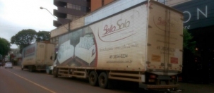 As fotos são de sexta-feira, por volta das 7h30. É horário permitido para a carga e descarga no centro de Campo Mourão. O problema está no tamanho dos caminhões, que passam do limite permitido por lei.