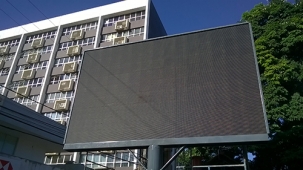 Olha só o que está sendo instalado no calçadão: um outdoor eletrônico com 15 m2 (5 m x 3 m). Os primeiros testes foram feitos na segunda-feira e o painel deve entrar em operação ainda nesta terça-feira. A tela tem 440 mil lâmpadas de led. Portanto, depois do "Sãojosezão", Campo Mourão ganha a "televisãozona". E Itu que se cuide...