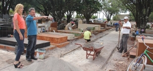 A prefeitura continua fazendo melhorias no Cemitério Municipal, que ficou muito tempo largado às almas penadas. Tá saindo calçamento com paver em ruas internas, além do plantio de grama.