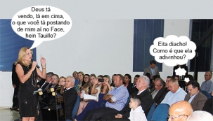 O clic é do fim de semana, na igreja Assmebleia de Deus, com homenagens ao pastor José Anunciação dos Santos e a esposa Irene. A prefeita Regina Dubay teve direito a discurso. Já os ex-prefeitos Nelson Tureck e Tauillo Tezelli, que aparecem na foto, só assistiram. Ah, ex-prefeito é isso mesmo. No máximo tem que ir ao Tribunal de Contas se explicar...