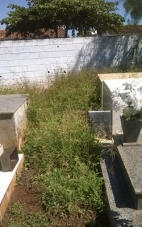 "O cemitério está com um mato enorme e sujeiras na parte dos fundos. Estão reformando e cuidando somente da parte da frente, o resto está nessa situação que podemos ver nas fotos". Sergio
