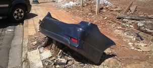 "Depois dos móveis, agora é a vez das autopeças enfeitarem as calçadas do centro de Campo Mourão. Para-choque traseiro de um carro foi deixado sobre a calçada na rua Brasil, entre as avenidas Manoel Mendes de Camargo e Goioerê".