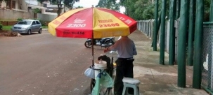Bem no Dia Internacional da Mulher, com programação especial em homenagem a elas no Parque do Lago, sorveteiro "arma barraca" no portão de entrada usando guarda-sol da campanha eleitoral dos deputados Douglas Fabrício (agora secretário) e Rubens Bueno, ambos do PPS. ai-aiai-aiai! Agora image a cara da prefeita Regina Dubay vendo isso...