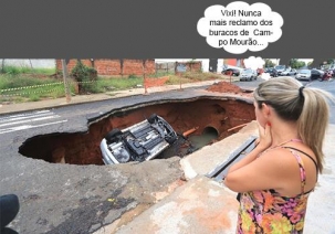 O clic desta vez vem de lojge: São José do Rio Preto/SP. Não faz parte da região, é claro, mas numa época em que se reclama tanto de buracos pelas ruas de Campo Mourão, esse aí, que apareceu nesta terça-feira, serve de consolo. Viu só, como sempre tem alguém em situação pior que a gente?...