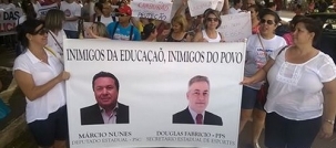 O protesto desta quarta-feira não poupou o deputado Márcio Nunes e o secretário de Estado Douglas Fabrício.