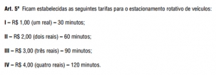 Será R$ 1 para meia hora, R$ 2 para uma hora, R$ 3 para uma hora e meia e R$ 4 para duas horas.