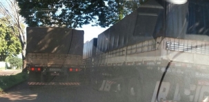 Cena de um caminhão fazendo ultrapassagem sobre outro numa rodovia, certo? Errado. A cena é da av. Guilherme de Paula Xavier, perímetro central de Campo Mourão.