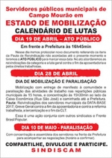 O terceiro será dia 10 de maio, com paralisação para realizar assembleia em frente ao Paço Municipal.