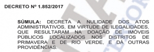 Os imóveis ficam nos distritos de Primavera e Rio Verde e, segundo a prefeitura, ainda não contam com construções.