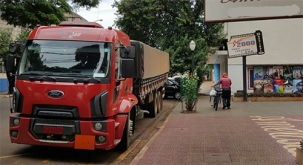 “Na contramão em plenas 14h, no centro da cidade. Tráfego de caminhões no centro esse horário não é proibido? Pode isso Campo Mourão?”