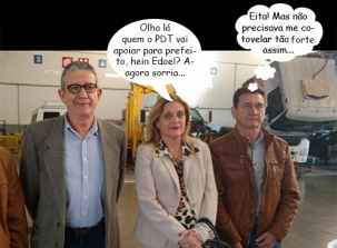 O clic é desta quinta-feira, em evento que comemorou os 45 anos a Paraná Diesel. A prefeita Regina Dubay (PR) esteve por lá, assim como o ex-vereador Edoel Rocha. Ele foi secretário no governo dela, mas o partido dele, o PDT, só vai definir no próximo fim de semana quem apoiará para prefeito. O presidente Iran Roberto Brzezinski já disse que prefere Rodrigo Salvadori (PSD). À esquerda, está outro ex-vereador, o Professor Idê, que deixou a política pra lá.