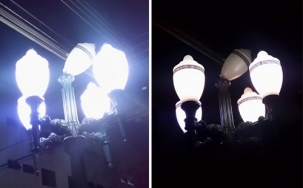 “Av. Manoel Mendes de Camargo, esquina com rua Mato Grosso. Parece que não calcularam direito a distância do poste republicano para os fios dos postes tradicionais. A luminária mais alta acabou quebrada e nem acende mais”.