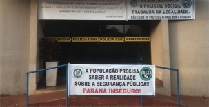 Não teve paralisação de serviços, mas foram colocadas faixa em frente à 16ª Subdivisão Policial de Campo Mourão. Escrivães e investigadores protestam contra a falta de estrutura para o trabalho. Em algumas cidades do Estado houve apresentação de coletas balísticos com validade vencida. Na semana passada, em reunião do Conseg, o delegado-chefe Nagib Nassif Palma manifestou preocupação com a possibilidade de greve da categoria.