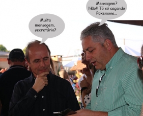 O clic é, ainda, da Festa da Vaca Atolada, realizada há poucos dias em Boa Esperança. O secretário de Estado Douglas Fabricio (Esporte e Turismo) prestigiou o evento. Na foto, ele conversa com o professor Sérgio Maybuk. E dá uma olhadinha básica no célular, é claro...