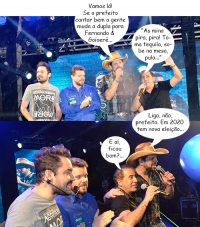 Os cliques são desta segunda-feira, durante show da dupla Fernando & Socoraba na Expogoio, em Goioerê. O prefeito Beto Costa e o presidente da Sociedade Rural, Lucas Sirotti, foram ao palco e cantaram junto com os sertejanejos, mas foi só o “Parabéns pra você” para o município. O aniversário é nesta quarta-feira, dia 10, mas o feriado foi antecipado para segunda, último dia da festa.