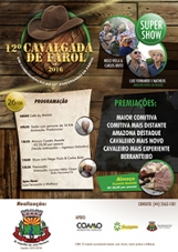 Farol – Acontece no próximo domingo a 12ª Cavalgada de Farol, evento que faz parte das comemorações pelo 23º aniversário do município. O percurso será de 14 km, com saída às 9h30. Na chegada haverá almoço a R$ 20, além de shows com duas duplas sertanejas. Mais informações: (44) 3563-1101.
