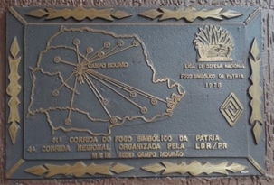 Faltam seis dias para a passagem da tocha olímpica por Campo Mourão. Haverá toda uma programação na próxima quarta-feira. E você sabia que existe uma placa na prefeitura que marca a passagem do “fogo simbólico” pela cidade, em 1978? Lá se vão 38 anos. Era a 41ª Corrida do Fogo Simbólico da Pátria, promovida pela Liga de Defesa Nacional. Pelo visto, essa lista não existe mais, nem a corrida. Restou a placa de bronze...