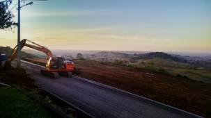 “Fim de tarde em Altamira do Paraná. Ao fundo, rua ainda de terra sendo asfaltada”.