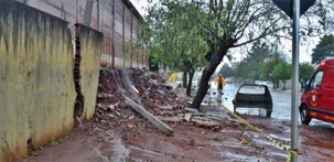 Foi numa chuva em setembro de 2014 que caiu parte do muro do colégio General Carneiro, em Roncador. Quase dois anos depois, o muro ainda não foi consertado. Falta dinheiro.