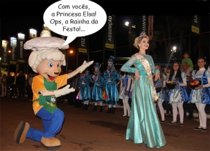 Olaf e a Princesa Elsa se divertiram durante a abertura da 26ª Festa Nacional do Carneiro no Buraco, nesta terça-feira à noite. Brincadeirinha, brincadeirinha. Você já viu que a diversão é do Carneirinho mascote e da rainha da festa, Tátila Faria.