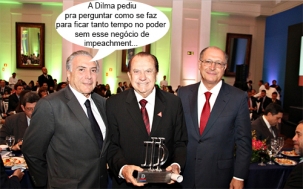 Olha aí a versão com balãozinho do presidente da Coamo, José Aroldo Gallassini, recebendo o prêmio de melhor cooperativa do Brasil, em evento promovido pela revista "Isto É Dinheiro". Foi em São Paulo, com a presença do governador Geraldo Alckmin e do vice-presidente da República, Michel Temer, que estava de presidente em exercício, já que Dilma Rousseff viajou para os Estados Unidos.