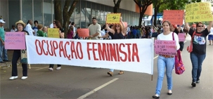 Frase em um dos cartazes do grupo feminista-marxista que defilou em Campo Mourão.