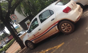 “Carro de prefeitura da região (Secretaria de Saúde) estaciona em vaga reservada a deficiente físico, nesta terça-feira, na rua Brasil, em frente à prefeitura de Campo Mourão”.