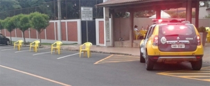 “Virou moda em Campo Mourão guardar vagas no estacionamento público. Acontece todos os domingos neste local, na rua Santos Dumont”.