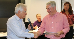 Quatro prefeitos da região, alguns vice-prefeitos, vereadores e lideranças participaram nesta segunda-feira, na Acicam, de reunião em que o deputado federal Rubens Bueno anunciou as emendas que propôs para 2016. Como de Roncador não tinha ninguém presente, Bueno não pensou duas vezes e “nomeou” o secretário de Estado Douglas Fabrício, que é roncadorense, como representante do município. E lá foi ele receber a papelada...