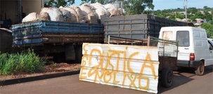 Donos de seis empresas de compra e venda de materiais recicláveis fizeram protesto nesta terça-feira em Goioerê.