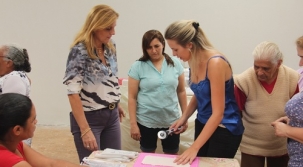 Os 33 clubes de mães mantidos pela prefeitura de Campo Mourão estão recebendo materiais e máquinas de costura patchwork digitais. Os materiais de costura, pintura e artesanato foram adquiridos pelo próprio município, enquanto que as máquinas foram viabilizadas junto ao governo federal. A prefeita Regina Dubay e a secretária-filha Anelise Dubay (Mulher) acompanham a entrega. E olhe ali, a secretária teve que demonstrar que sabia o que estava repassando. Pensa que é fácil, é?...