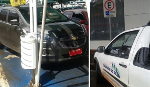 2) “Carro público, também de Corumbatai do Sul, sem credencial, mas parado em vaga para pessoa com deficiência, no centro de Campo Mourão”.